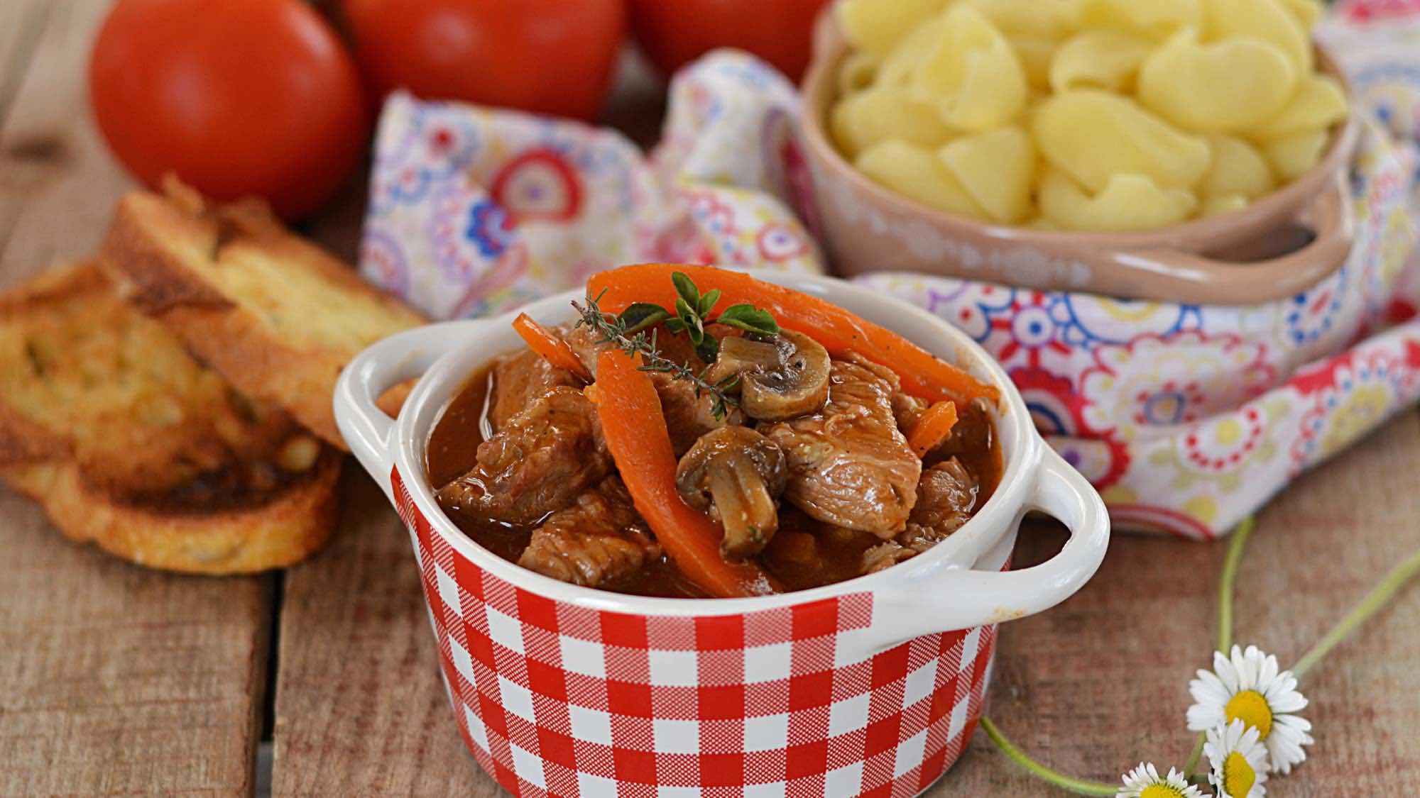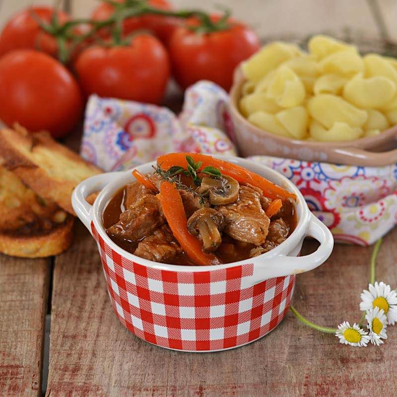 - 600 g cielęciny pokrojonej w plastry lub kostkę