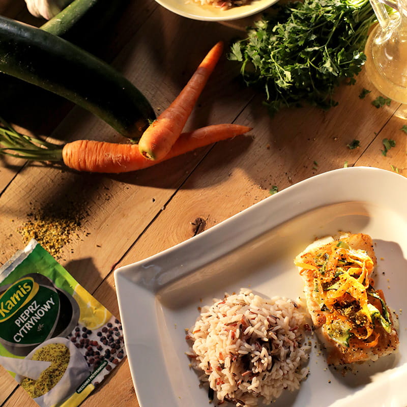 - Składniki na halibuta: