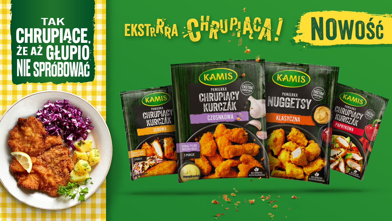 Szukasz pomysłu na obiad dla całej rodziny? Z pomocą przychodzą nowe panierki Kamis! Szybkie i proste w użyciu, a przede wszystkim super smaczne i ekstra chrupiące! Bez bałaganu, bez wielu godzin spędzonych w kuchni. To tak proste, że aż głupio nie spróbować!