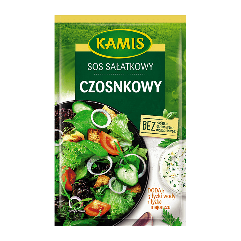 Cukier, sól, laktoza (z mleka), skrobia modyfikowana, kwas: kwas cytrynowy; regulator kwasowości: dwuoctan sodu; czosnek (w tym liofilizowany) 6,5%, natka pietruszki 6%, maltodekstryna, gorczyca biała, cebula, ekstrat drożdżowy, szczypiorek 2,4%, olej roślinny rzepakowy, aromaty (zawierają gorczycę), substancja przeciwzbrylająca: dwutlenek krzemu; pieprz czarny, przeciwutleniacz: ekstrakty z rozmarynu; kurkuma. Przyprawy i zioła 22,1% w tym zioła: 8,4%