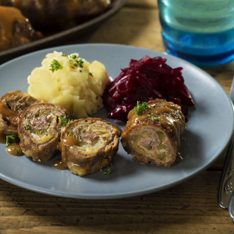Pieczone zrazy cielęce to pyszne danie, w którym delikatność mięsa łączy się z bogactwem smaków i aromatów. W naszej wersji zrazy cielęce wypełniamy farszem z ogórków kiszonych i oliwek ułożonych na kołderce z musztardy Dijon. Jeśli szukasz sprawdzonego przepisu na zrazy cie...