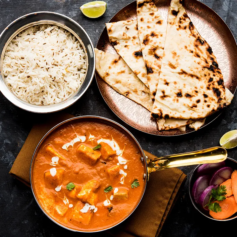 - Ryż jaśminowy lub chlebki naan