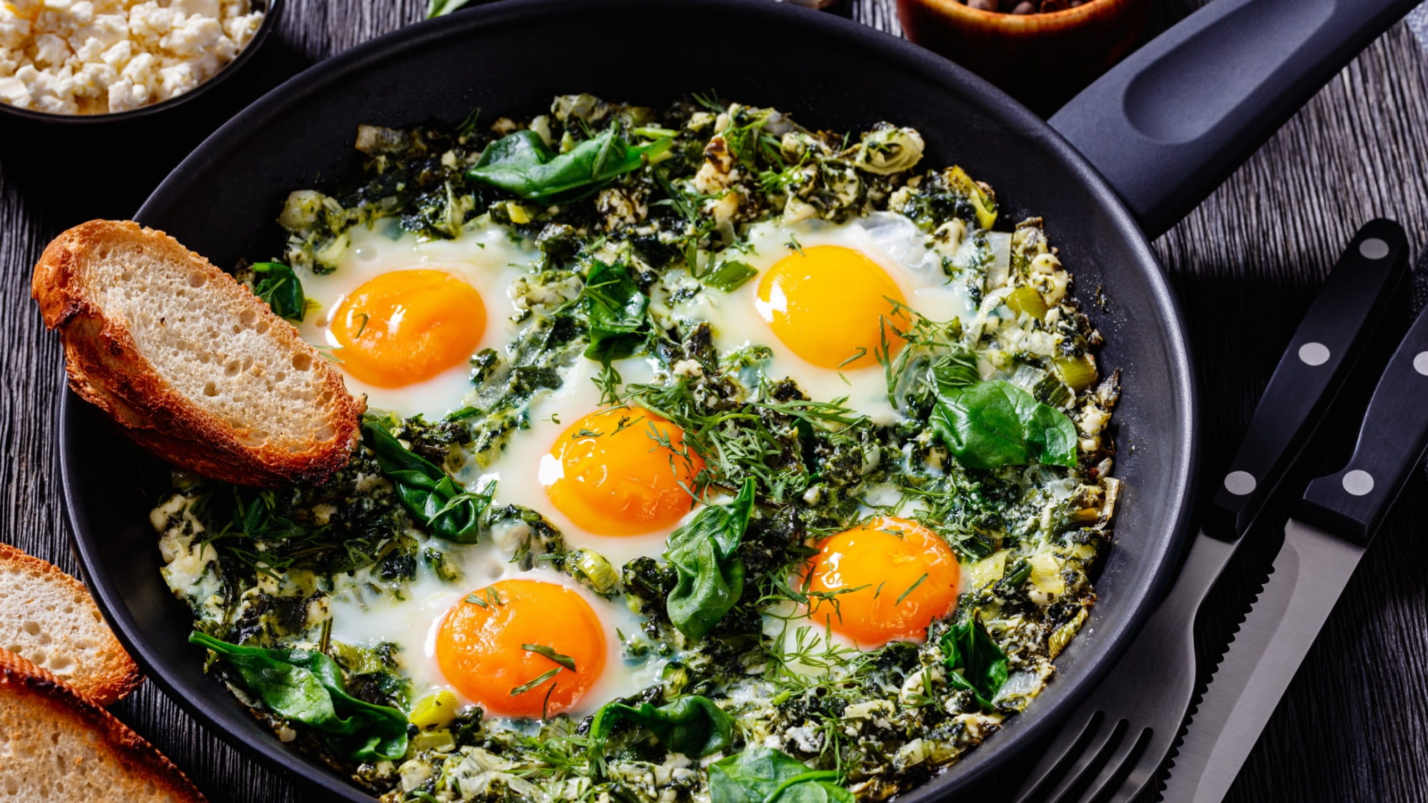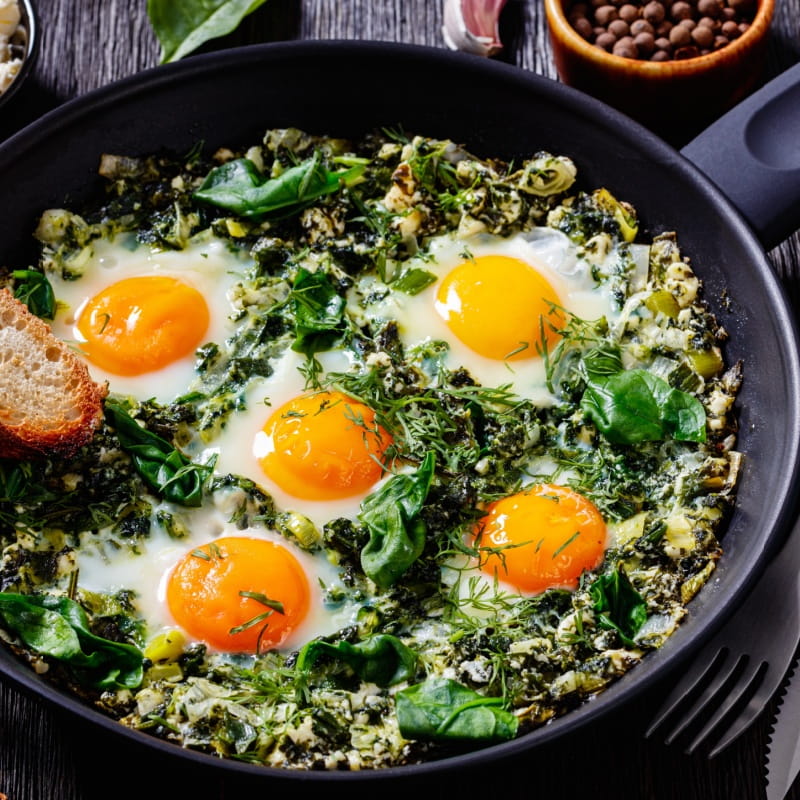 To idealna propozycja na szybkie, sycące śniadanie lub lekki obiad. Kremowe warzywa, aromatyczny por, delikatny szpinak i groszek tworzą świetną bazę dla jajek, a dodatek musztardy z pieczonym czosnkiem i miodem nadaje całości wyjątkowego charakteru.