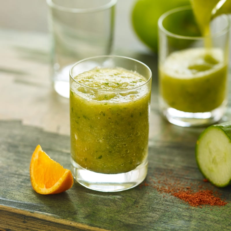 - 1 ogórek pokrojony na grube kawałki (bez nasionek) oraz dodatkowo kilka plastrów do dekoracji