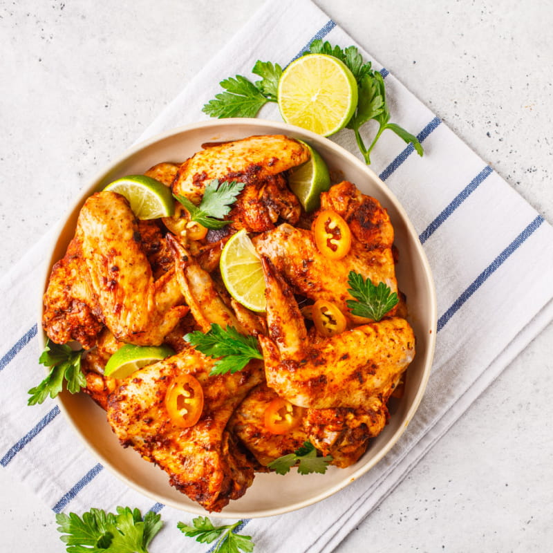 Zaskocz swoich gości pysznymi skrzydełkami z kurczaka w musztardowo-limonkowym sosie. Prosty w przygotowaniu przepis, który z pewnością przypadnie do gustu wszystkim miłośnikom ostrych smaków. Idealne danie na rodzinny obiad lub imprezę ze znajomymi.