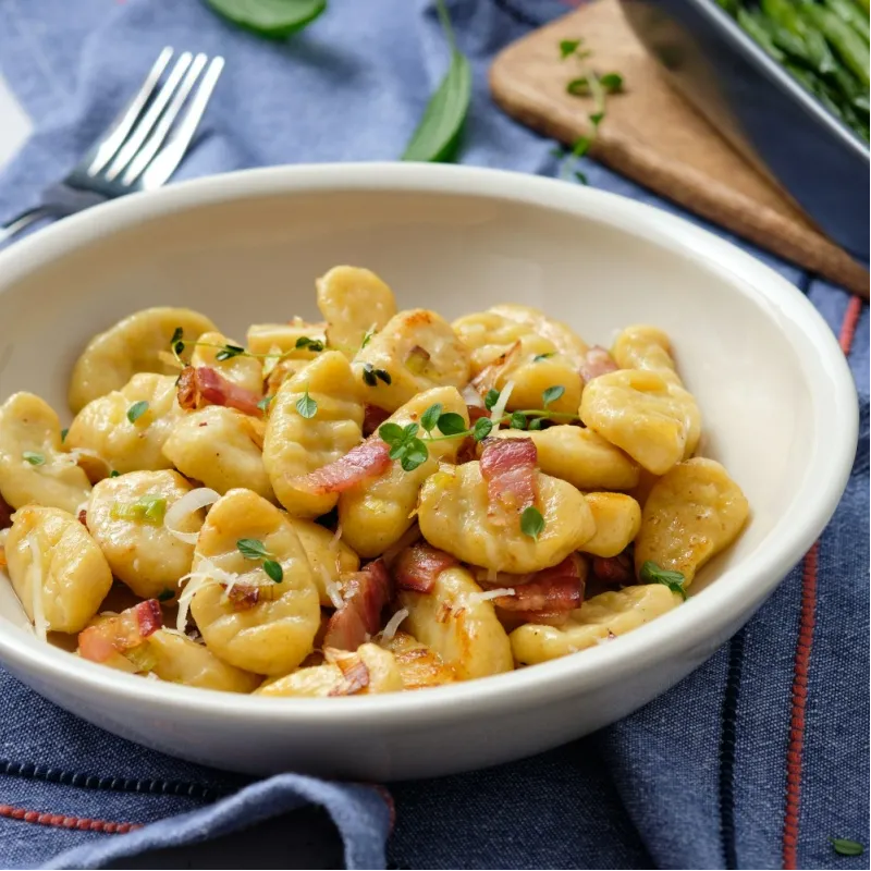 - 100 g wędzonego boczku, pokrojonego w słupki