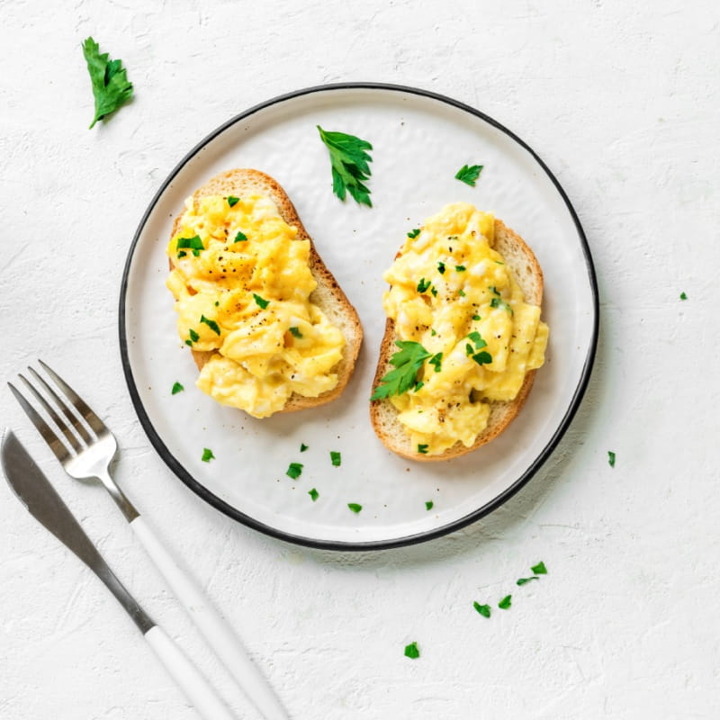 - jajecznica z 6 jaj