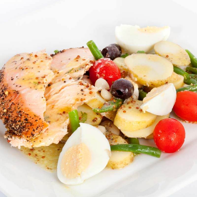 - 2 jajka ugotowane na twardo, obrane i pokrojone w ćwiartki
