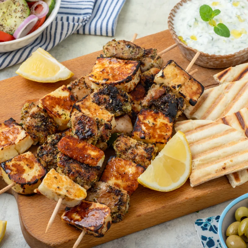 - 1 opakowanie sera halloumi (ok. 200 g) pokrojonego w grubą kostkę