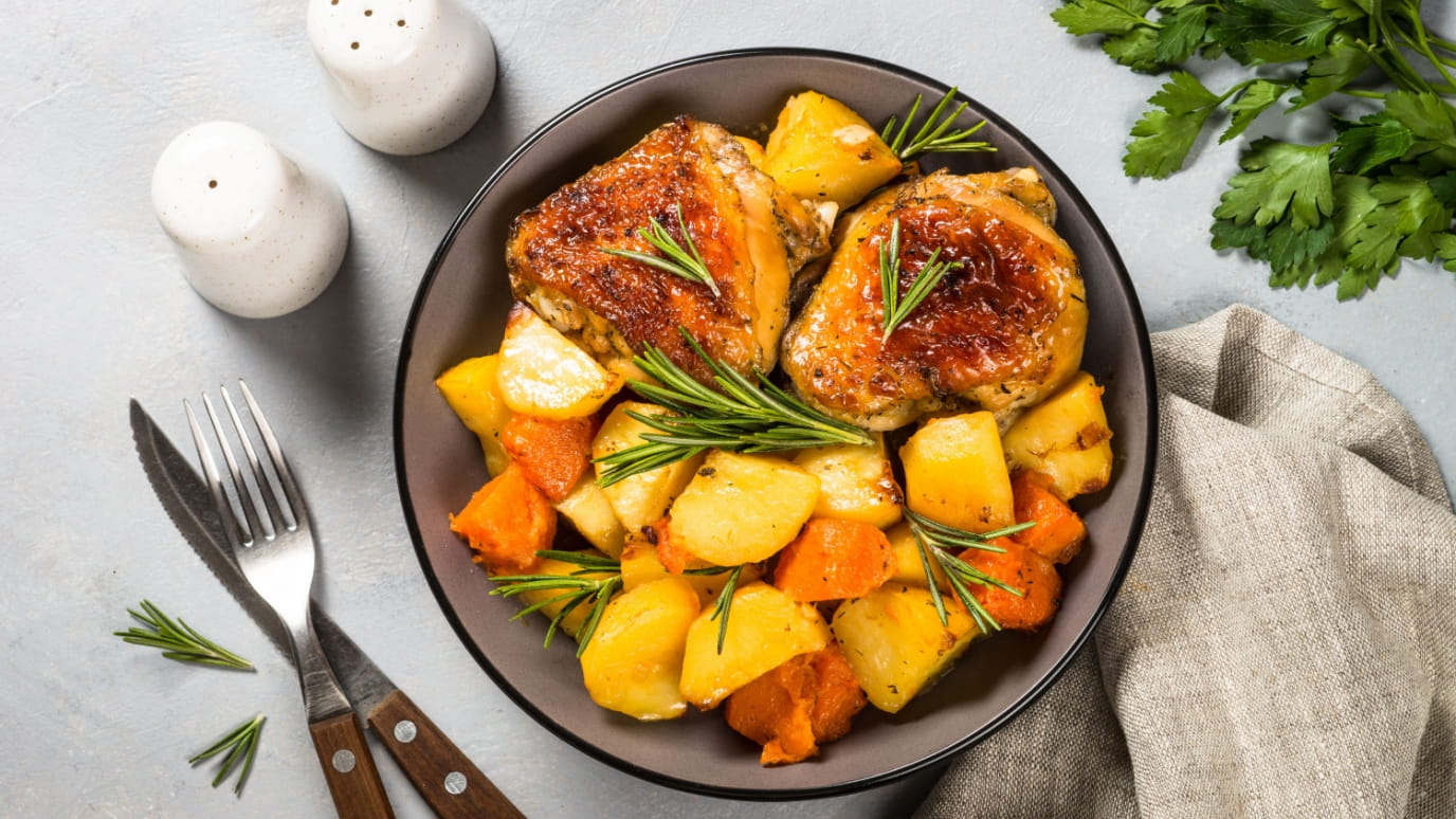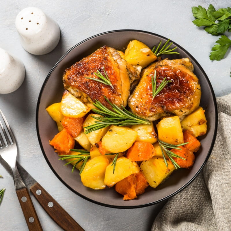 - 8 małych młodych ziemniaków pokrojonych na pół