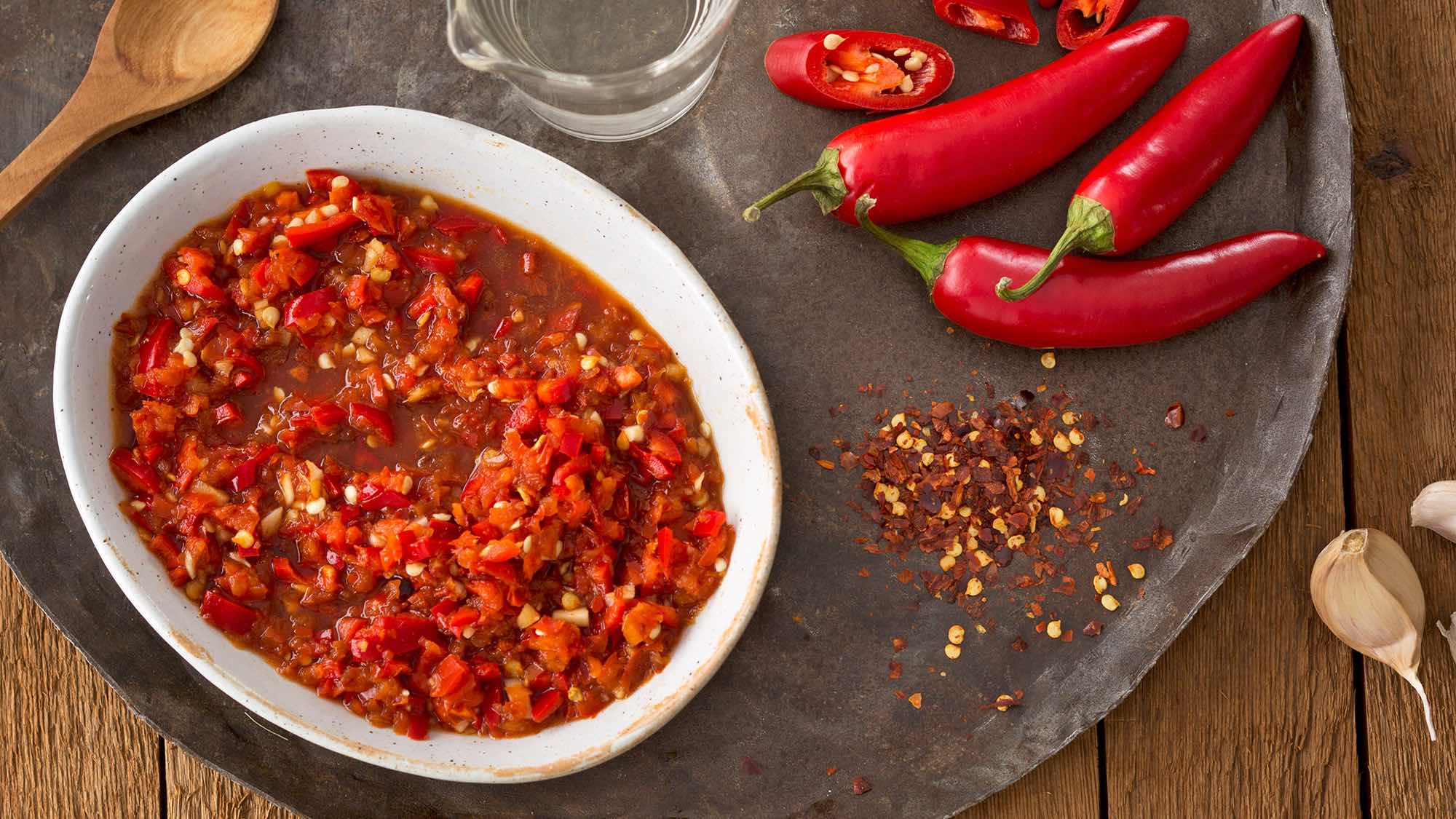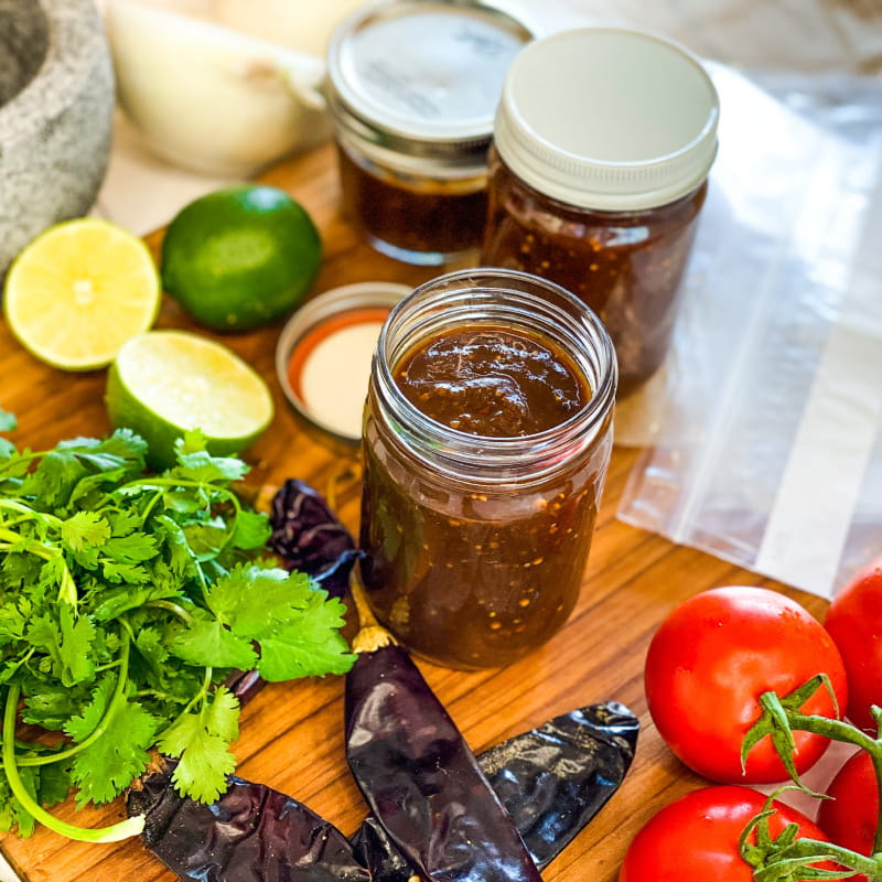 - 2 papryczki chili guajillo lub papryka chili pasilla, bez łodygi, oczyszczone z pestek i grubo pokrojone