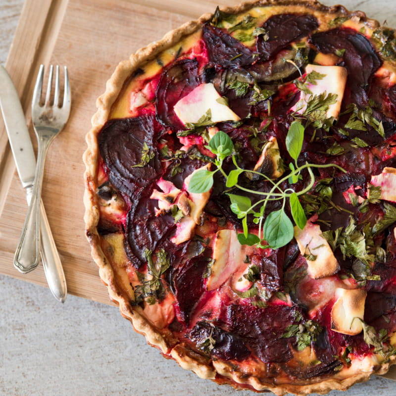 - 2 upieczone/gotowane buraki pokrojone w plastry