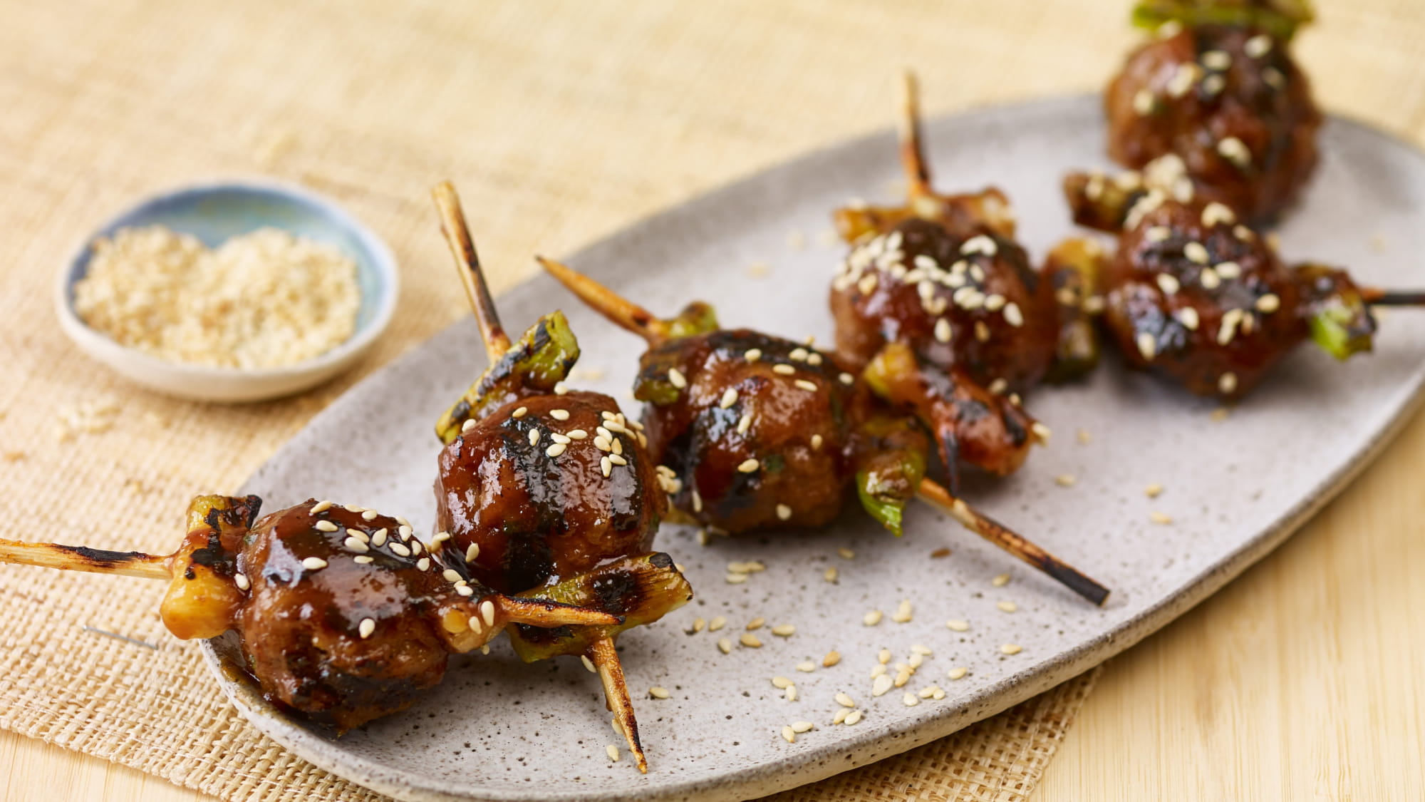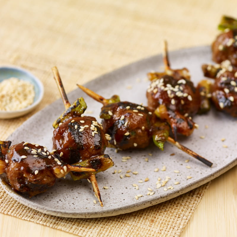 - Szaszłyki yakitori z klopsami z indyka oraz dymką