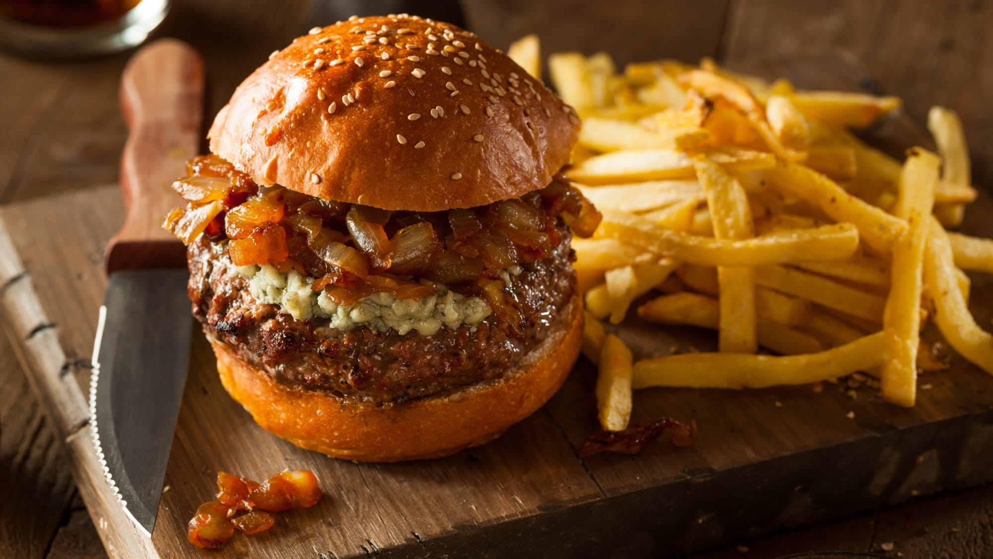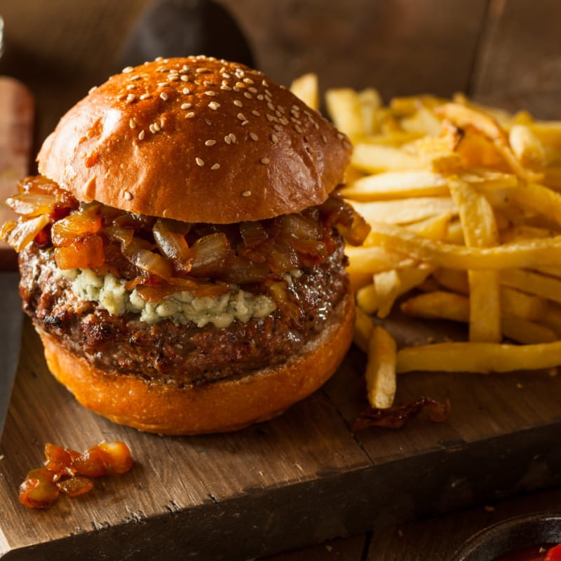 Soczysty burger wołowy w eleganckim, francuskim stylu. Połączenie aromatycznego tymianku, delikatnie karmelizowanej cebuli i wyrazistego sera gruyère sprawia, że klasyczny burger nabiera zupełnie nowego charakteru.