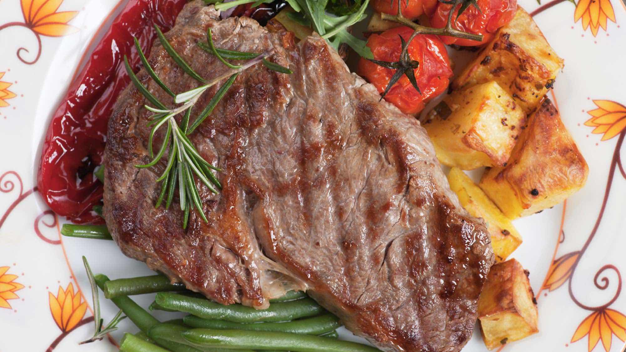 - 300 g ksteku wołowego z polędwicy lub antrykotu pokrojonego w paski